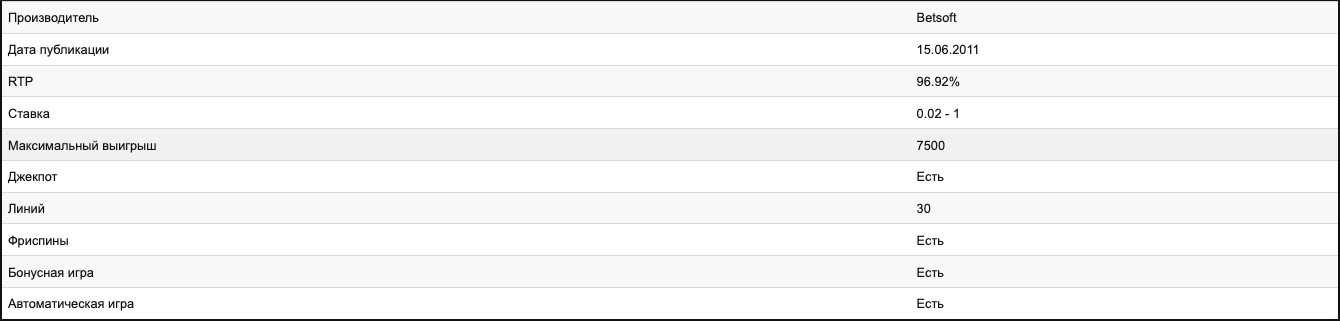 Разработчики из компании Betsoft позаботились о том, чтобы вас окружала 100-процентная атмосфера вечернего Парижа - от детализированной графики до атмосферной музыки. В игре присутствуют интересные символы, каждый из которых вносит свой вклад в поддержку тематики. - Символ Вора – наиболее ценный символ, приносящий самый большой коэффициент выплат. - Символ Копа - выброситесь в бонусный раунд, если выпадет 3 и более символа. - Символ Скульптуры – активирует бесплатные вращения при выпадении трех и более символов.