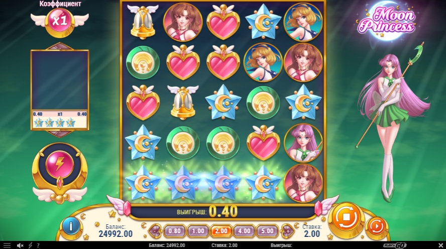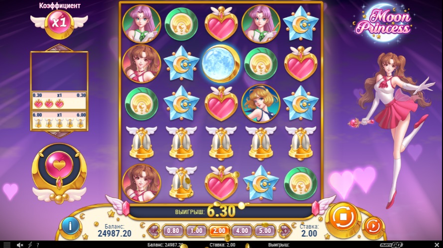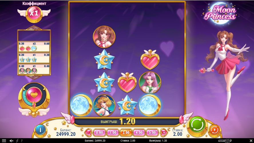 Игровой автомат Moon Princess от компании Play`n Go посвящён одноимённому японскому аниме 1990-х годов. Moon Princess отличается нестандартным дизайном и оригинальными функциональными характеристиками. Главные героини культового аниме Moon Princess — три Принцессы помогают игроку добиваться победы, а приятная электронная музыка настраивает на позитивный лад. Слот доступен на нескольких языках. Для любителей играть на смартфонах и планшетах есть мобильная версия.