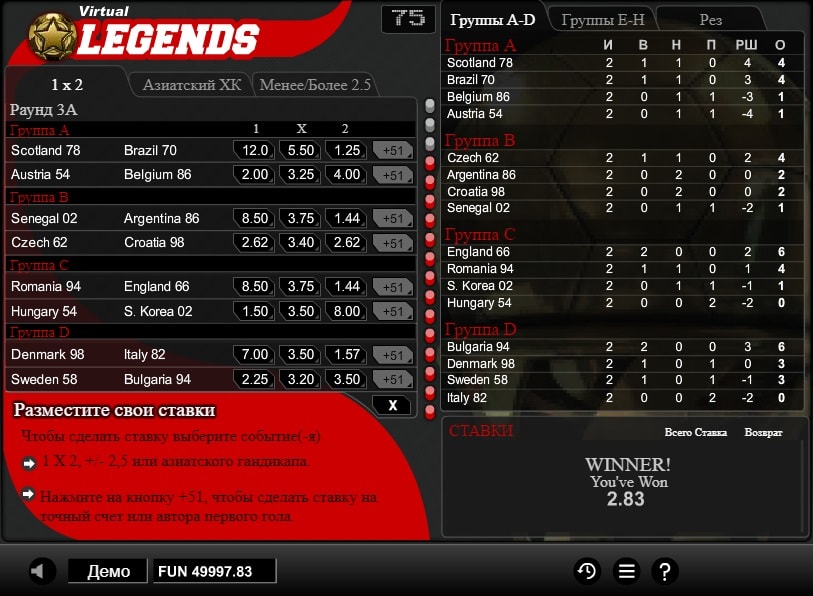 В целом, Virtual Legends – это отличный выбор для тех, кто хочет выиграть и при этом получить удовольствие от игры. Не дайте этому шансу уплыть и начните Virtual Legends играть прямо сейчас!